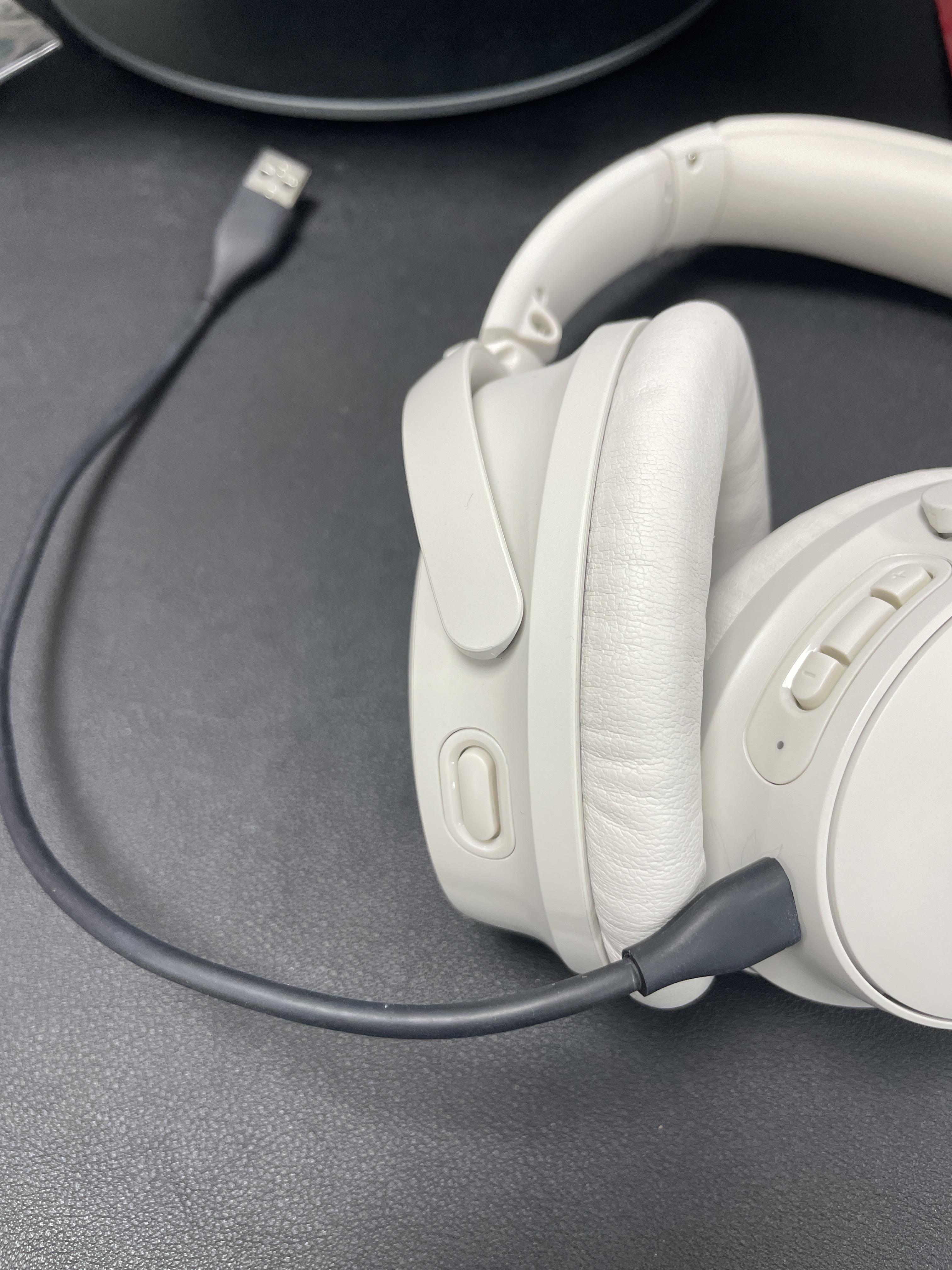 2. usb-c 단자를 QC45 충전 구멍에 꽂는다 (주의: 다른 쪽은 연결 안 된 상태여야함)